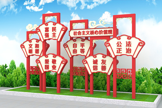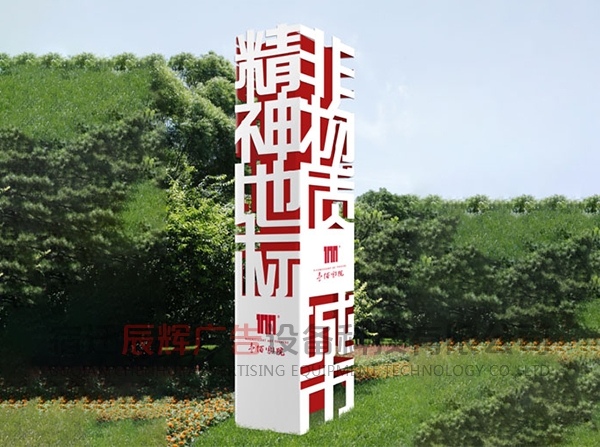 精神堡壘具備一定的體量和高度,能夠獨立表達企業(yè)形象的大型單體標識。精神堡壘特指為商業(yè)體、主題園區(qū)、交通站點等公共場所,樹立醒目且符合場地氣質的藝術構筑物。精神堡壘的擺放的位置也尤其重要,人都有視覺盲點,精神堡壘給人一種清新和諧的感覺。
